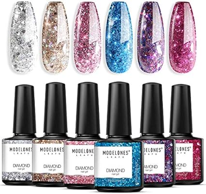 Amazon Com Modelones Glitter Gel Nail Polish Set 6pcs 0 33 Oz Uv Led Soak Off Gel Nail Polishes Collection Of Red Pink Purple Blue Gold Silver Colors In Gift Package Beauty