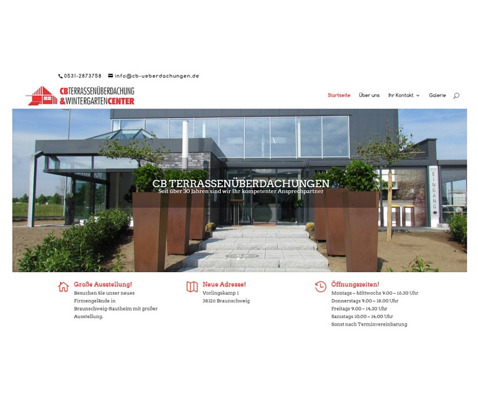 Terrassenuberdachung braunschweig. CB Terrassenüberdachung & Wintergartencenter Braunschweig GmbH 0 Jetzt bewerten!. Nutzen Sie unser Kontaktformular!. Terrassenüberdachung GlasFaltwand Sonnenschutz Sonnensegel Markise Fenster Haustüren, Vordächer und Garagentore Innentüren Möbel und Gartenmöbel Zubehör Kontakt aufnehmen Aussstellung Ausstellung Einzigartige Ausstellung auf über 800 m² Kommen Sie uns in "unserem Blickreich" besuchen!.