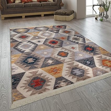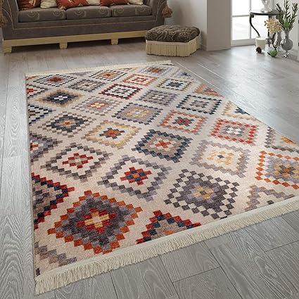 Amazon De Paco Home Wohnzimmer Teppich Ethno Design Fransen Boho Stil Rauten Mehrfarbig In Bunt