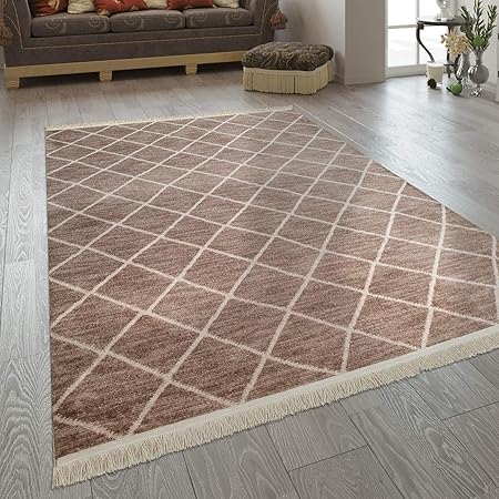 Amazon De Paco Home Wohnzimmer Teppich Ethno Design Fransen Boho Stil Kariert Mehrfarbig In