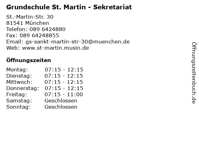 ᐅ Offnungszeiten Grundschule St Martin Sekretariat St Martin Str 30 In Munchen