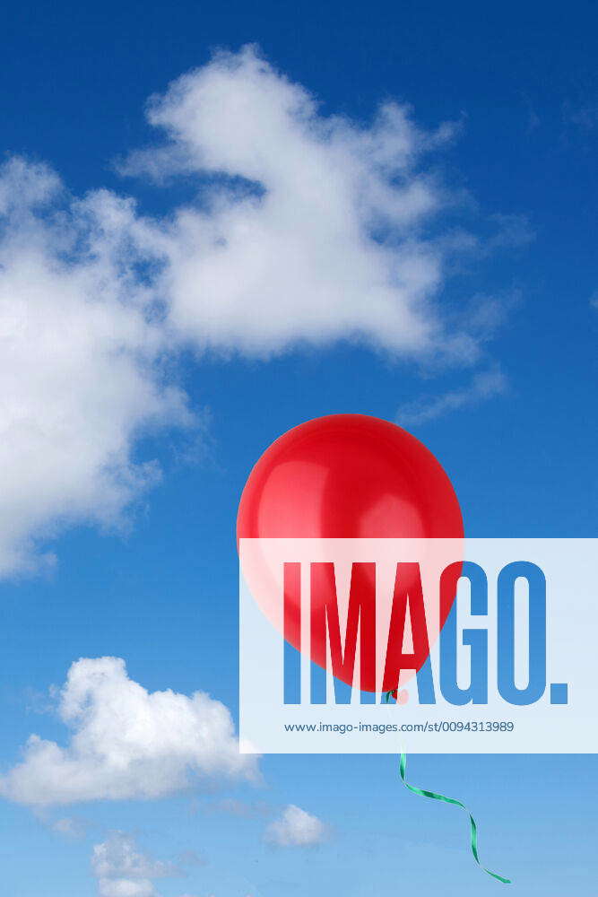 Roter Luftballon Vor Blauen Himmel Mit Cumulus Wolken Stock Photo Alamy