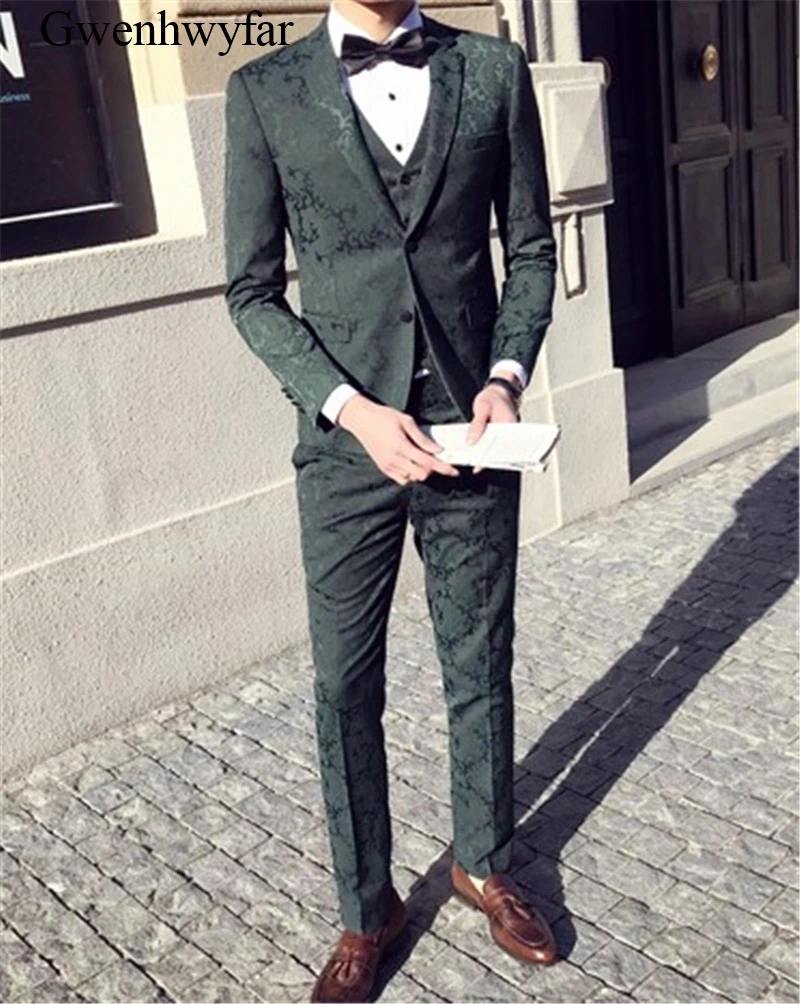 Gwenhwyfar Grun Smoking Fur Uyoung Manner Muster Gedruckt Manner Anzug Weste Mit Hosen 3 Stuck Slim Fit Hochzeit Smoking Anzuge Fur Manner Anzuge Aliexpress