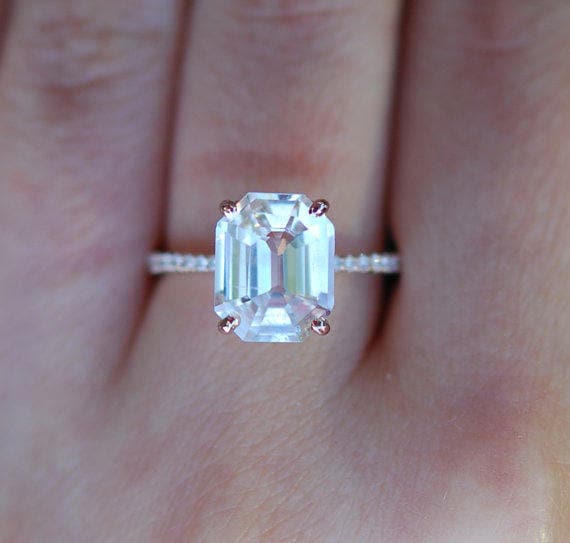 Weiss Saphir Verlobungsring Versprechen Ring Smaragdschliff Etsy