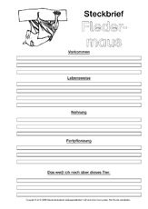 Steckbrief Fledermaus Steckbrief Grundschule Unterrichtsmaterial