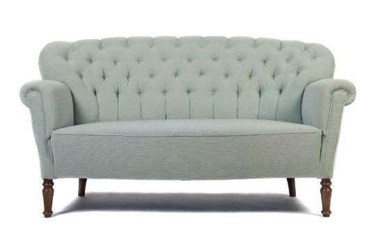 Sofa Geschwungene Form Mit Hochgezogenen Lehnen Vorne Balusterbeine Gepolstert Und Mit Hellblau