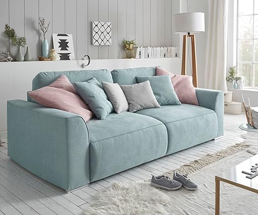 Bigsofa Lauretta Light Blue 250x130 Sleep Function Ottoman With Cushion Big Sofa Amazon De Kuche Haushalt