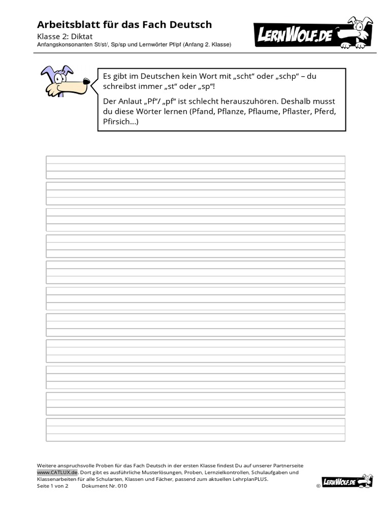 Arbeitsblatt Fur Das Fach Deutsch Klasse 2 Diktat