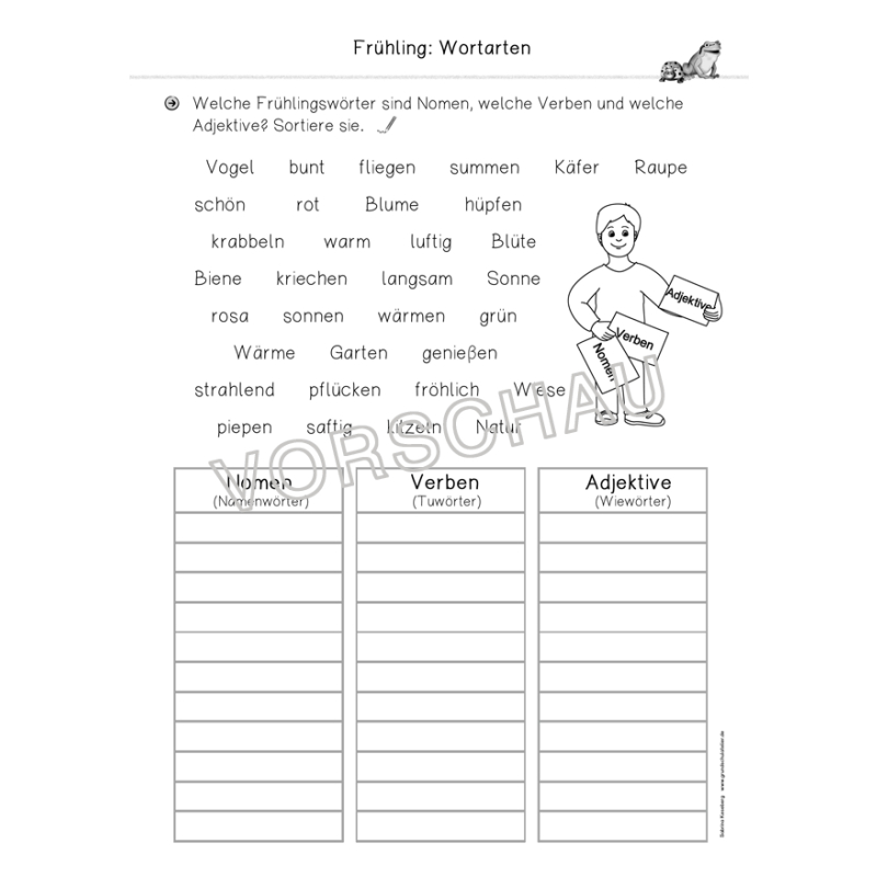 Es handelt sich um 130 Lernwörter, aus der 2Klasse, die auf 10 Arbeitsblätter verteilt sind Die Adjektive/Wiewörter, Nomen/Namenwörter und Verben/Tunwörter müssen in einer. Kostenlose Arbeitsblätter und Übungsblätter für Deutsch Klasse 2 Hier findet Ihr kostenlose Lerndokumente für den Deutschunterricht in der Grundschule So können die Kinder den gelernten Unterrichtsstoff üben und vertiefen Die Arbeitsblätter können auch in der Schule zB für Vertretungsstunden, Mittagsbetreuung etc eingesetzt werden. Lernwörter Klasse 1/2 Knüpfen mit der Scheibe Schwungübung mal anders Gedichtekartei für Muttertag und Vatertag Ostern im ZR ohne Ü.