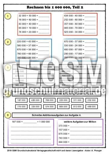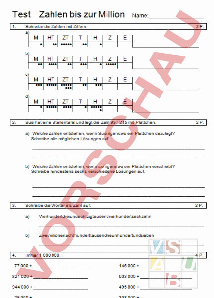 Aufgaben Bis Zur Million 2 Orientierung Bis 1 000 000 Erweiterung Zr 1 000 000 Mathe Klasse 4 Grundschulmaterial De