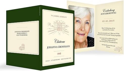 Geburtstagseinladungen zum 70 mit Stil Bereits der deutsche Geologe Carl Ochsenius wusste zu sagen „Es kommt nicht darauf an, wie alt man ist, sondern wie man alt ist“ Viel Wahrheit steckt in diesen Worten, die sich jeder in scheinbar aussichtslosen oder unglücklichen Momenten zu Herzen nehmen sollte. Personalisierte, florale Einladungen zum 70 Geburtstag Optimalprint do not visit 100% KundenzufriedenheitsGarantie 100% Qualitätsgarantie " " 9,2 / 10 (. Sie können das, mit der Einladungskarte zum runden Geburtstag Label 70 Fügen Sie der Textkarte noch Ihren persönlichen Text im Inneren hinzu.