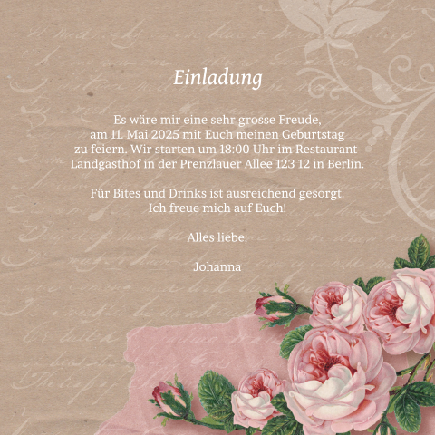 Einladung Zum 70 Geburtstag Aquarell Rosen Kartenmanufaktur