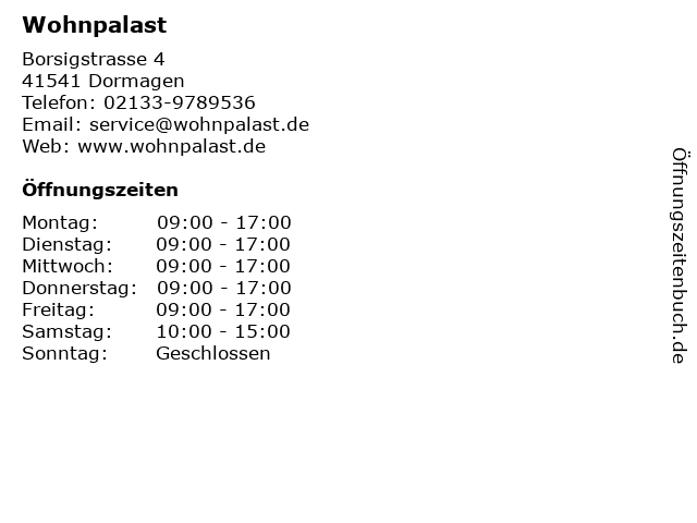 ᐅ Offnungszeiten Wohnpalast Borsigstrasse 4 In Dormagen