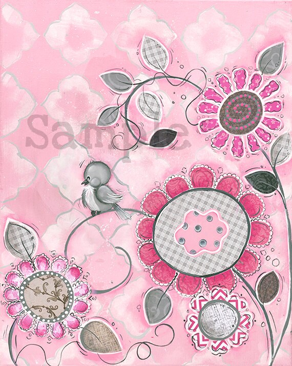 Vogel Wand Kunst Kinder Wand Kunst Rosa Und Grau Thema Etsy