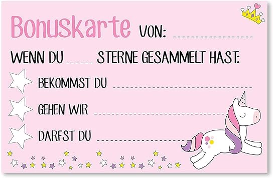 5 Belohnungskarten Mit Einhorn Motiv Zum Ausfullen I Dv 0 I 85 X 55 Mm I Belohnungssystem I Motivation Fur Kinder Madchen Deutsch Rosa Amazon De Burobedarf Schreibwaren