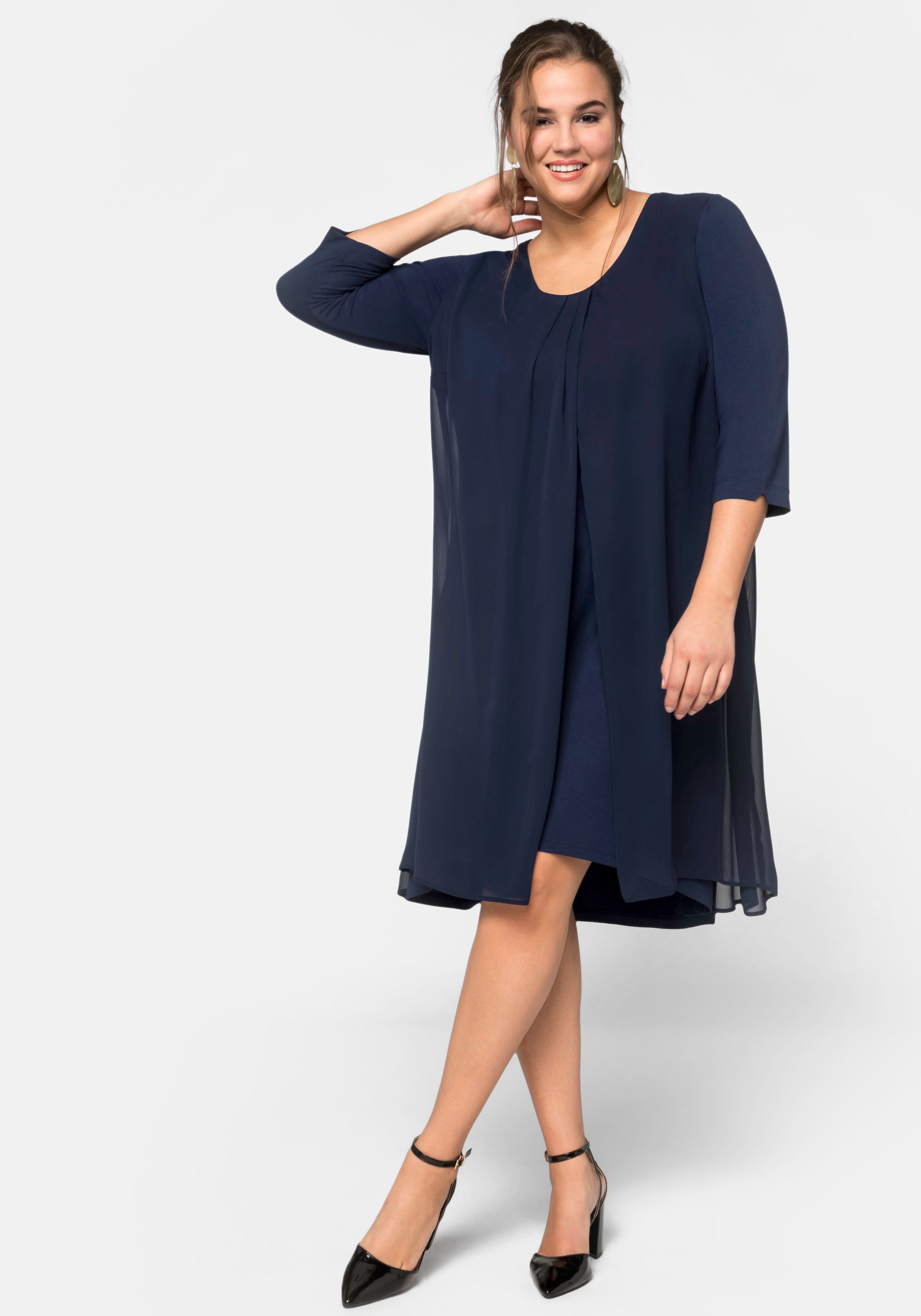 Sempre Piu Damen Kleid Blau Mit Chiffon Stola Knielang Grosse Grossen Mode Fur Mollige Damenmode Online Shop Fur Grosse Grossen