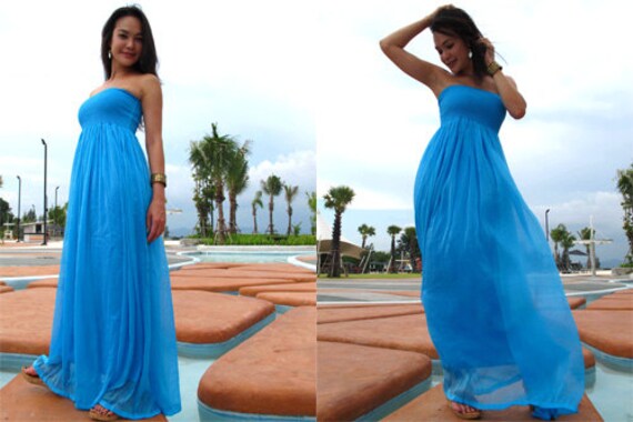 Brautjungfrauenkleid Blaues Kleid Chiffon Kleid Langes Etsy