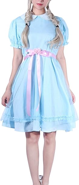 Rolecos Lolita Kleid Blaues Chiffon Kleid Puffarmel Halloween Party Cosplay Kostum Blau Large Amazon De Bekleidung