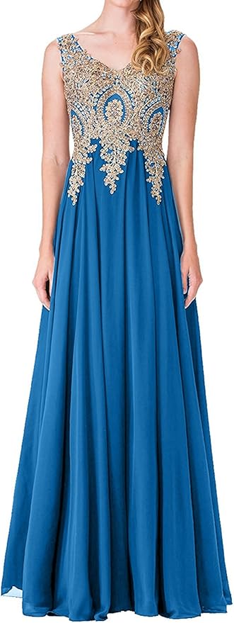 Charmant Damen Elegant Blaues Langes Abendkleider Mit Spitze Ballkleider Promkleider Chiffon Kleider Neu Amazon De Bekleidung