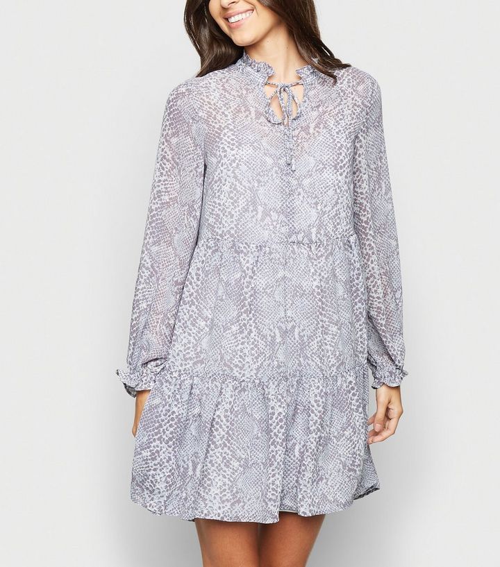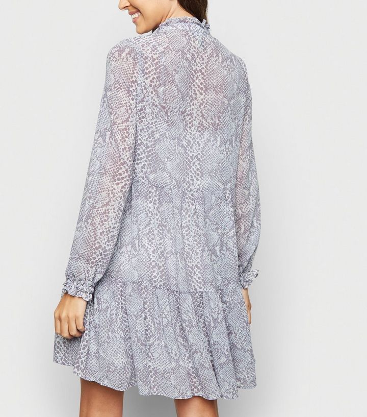 Blaues Gestuftes Chiffon Kleid Mit Schlangenmuster New Look