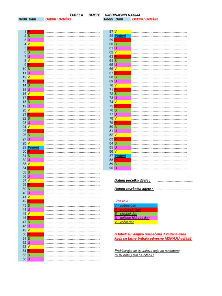 Tabela Za Pracenje Un Dijete Rina S 90