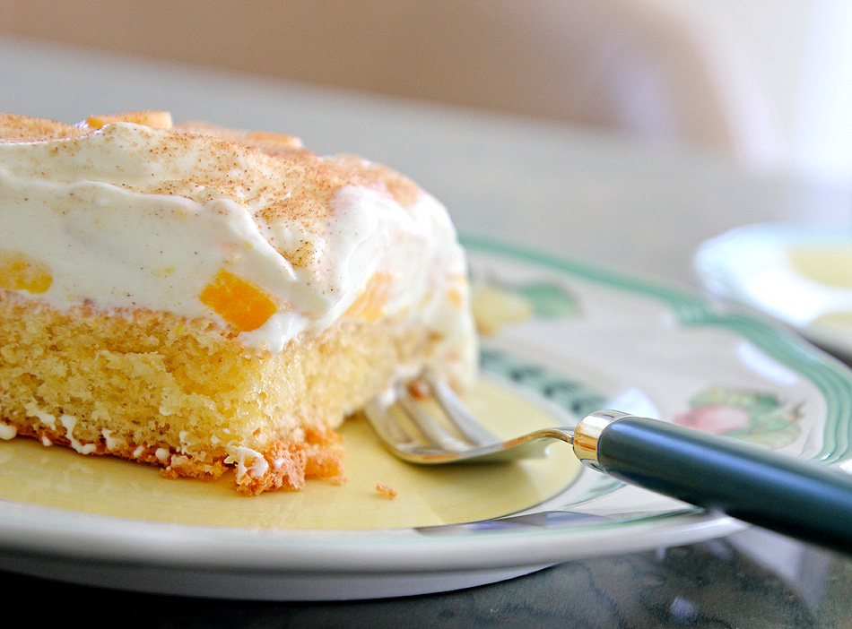 Fantakuchen Fluffiger Boden Mit Einer Schicht Aus Schmand Und Pfirsich