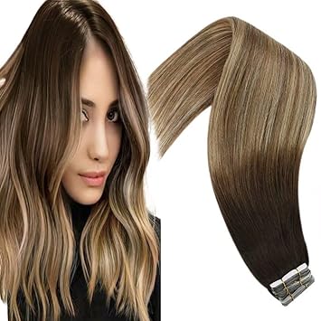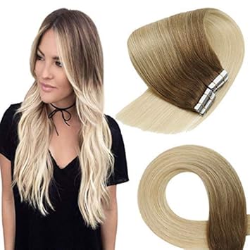 Amazon Com Vesunny Tape In Hair Extensions Human Hair Ombre Blonde 18inch Skin Weft Hair Extensions Tape In Balayage Medium Brown Ombre Blonde Tape In Extensions Remy Hair pcs 50g Beauty
