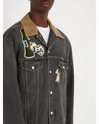 Gucci Corduroy Trimmed Appliqued And Printed Denim Jacket Men Gray The Fashionisto