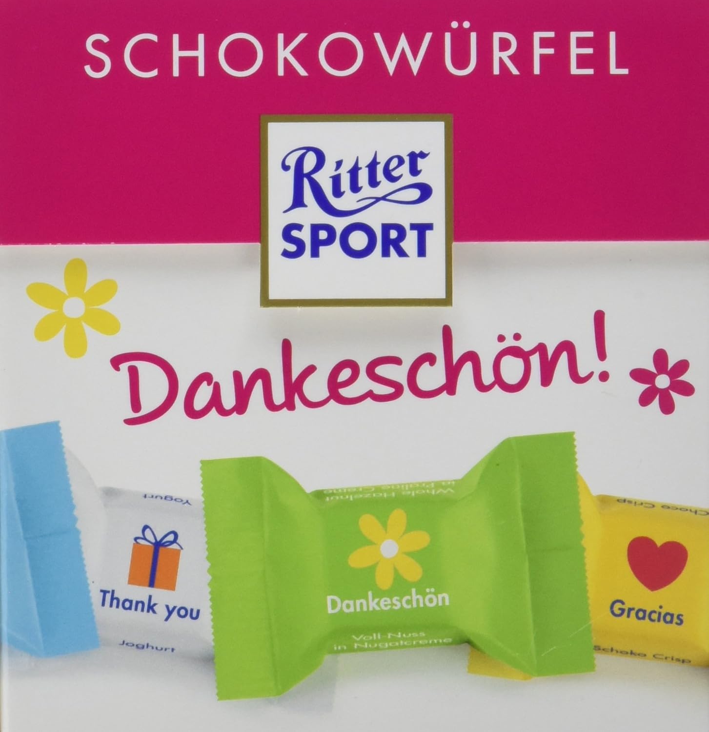 Ritter Sport Schokowürfel Dankeschön 4x (176 g), das Geschenk zum Danke sagen, einzeln verpackte MiniSchokoladenwürfel, verschiedene Sorten 48 out of 5 stars 235 10,35 € ( 14,70 € / 1 kg). The basis for every good chocolate is a wellbalanced chocolate mass, which is why we attach particular importance to mass quality, just as we do to keeping our recipes secret. Ritter Sport Schokowürfel Dankeschön 4x (176 g), das Geschenk zum Danke sagen, einzeln verpackte MiniSchokoladenwürfel, verschiedene Sorten 48 out of 5 stars 235 10,35 € ( 14,70 € / 1 kg).