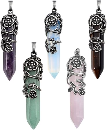Amazon Com Top Plaza Antique Silver Flower Wrapped Natural Quartz Gemstone Healing Crystal Necklace 5pcs Set Arts Crafts Sewing