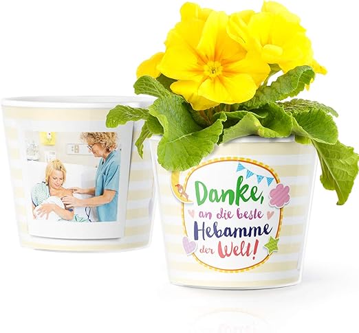 Geschenke Fur Hebammen Blumentopf O16cm Geschenk Zum Danke Sagen Nach Der Geburt Oder Schwangerschaft Mit Bilderrahmen Fur 2 Fotos 10x15cm Danke An Die Beste Hebamme Der Welt Amazon De Kuche Haushalt