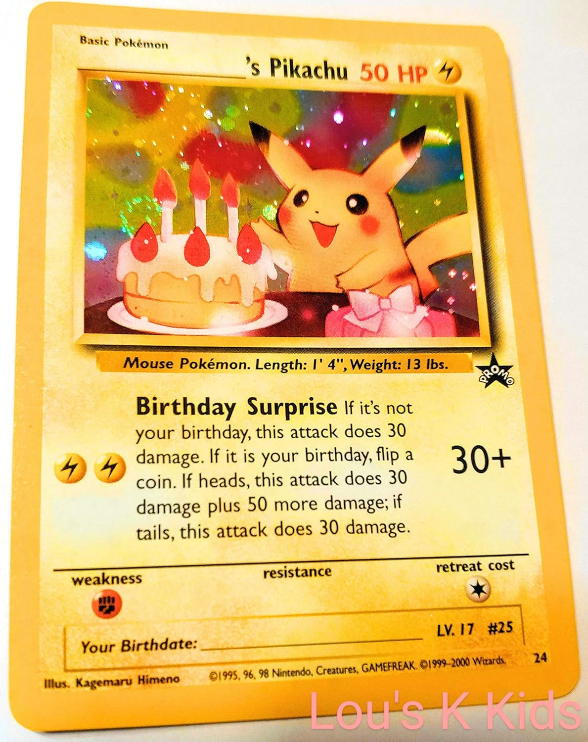 This card is a Pikachu foil card with a small nonfoil Promo star symbol with the word "Promo" stamp below the artwork It also has the number "24" instead of a rarity symbol or set number, shows Pikachu by a birthday cake with candles, and is often called the "Happy Birthday Pikachu" card Don't be late for one of the biggest hits!. Pokemon Go Happy Birthday – Happy birthday to you!. A tiny rectangular piece of.