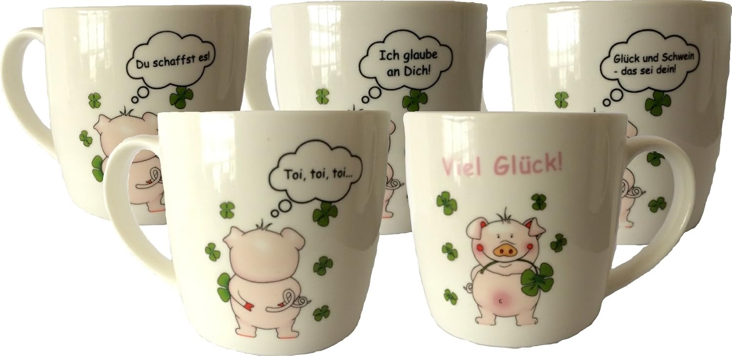 Tasse Kaffeebecher Glucksschwein 2 Verschiedene Spruche Zur Auswahl Geschenkidee Tasse Spruch Ruckseite Toi Toi Toi Amazon De Kuche Haushalt