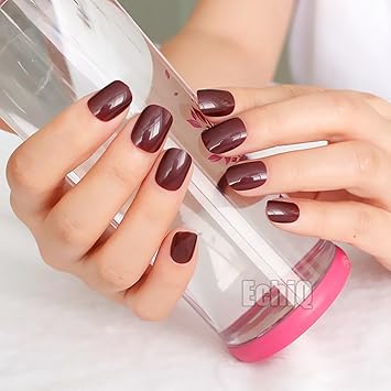 Sethexy Glanzend Squoval Kurz Falsche Nagel Korn Khaki Vollstandige Abdeckung Acryl Gefalschte Nagelspitzen Fur Frauen Und Madchen Amazon De Beauty