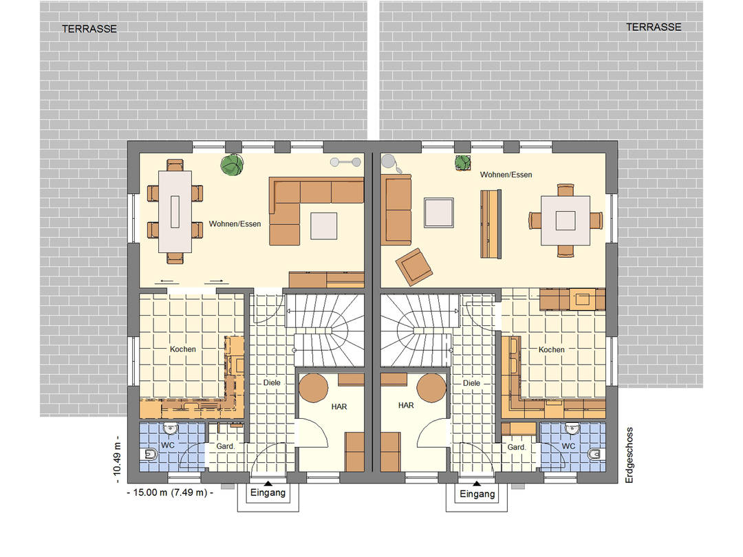 Das Doppelhaus Mainz 128 Trend Grundriss Erdgeschoss Ihr Town Country Massivhaus