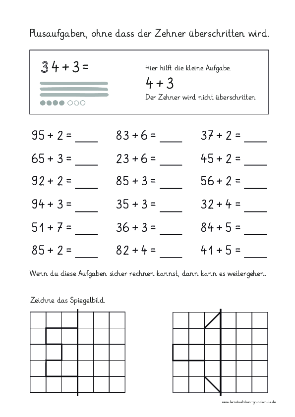 Rechengitter Bis Klasse 1 Kostenloses Arbeitsblatt Mit Losungen Als Pdf Download Erste Klasse Rechnen Lernen Mathe