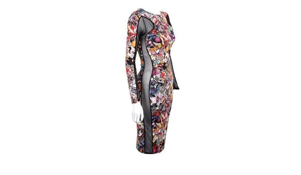 Damenmode Damen Witzig Aufdruck Contrast Seite Netz Schlankmachend Bodycon Kleid 8 14 Kleidung Accessoires Expertdigital Net