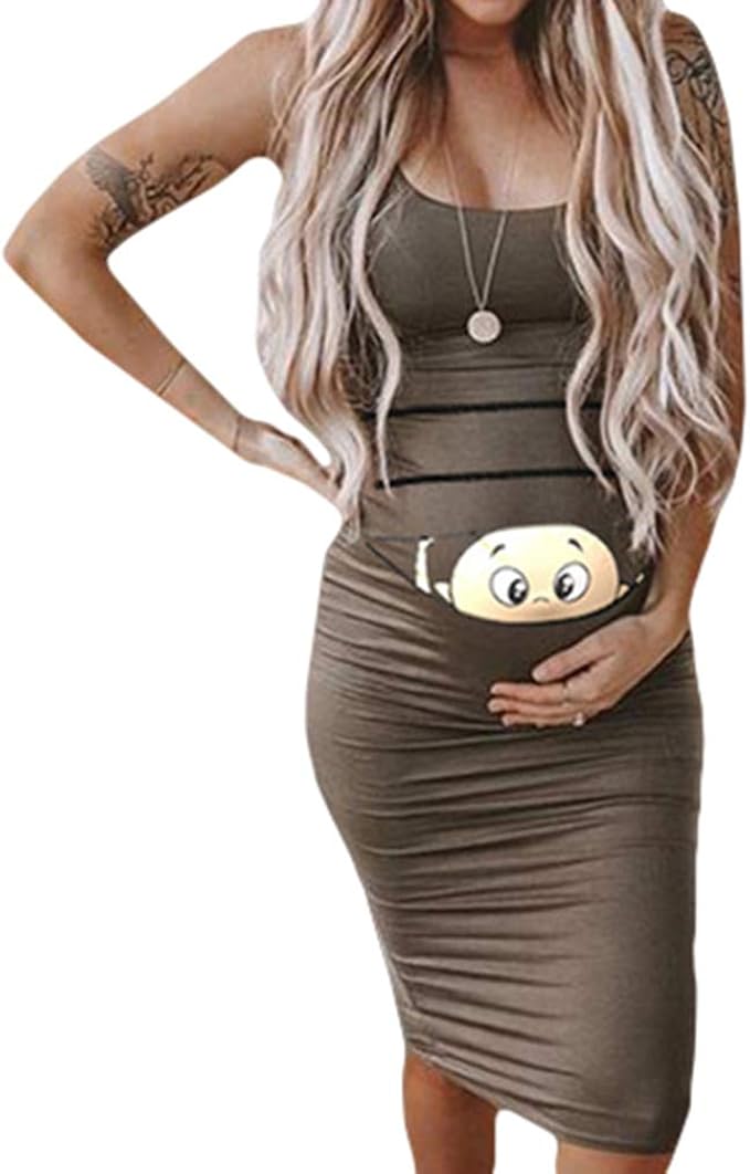 Hibote Damen Armellose Umstandskleid Mutterschaft Witzige Susse Musterdruck Kleider Mama Schwangerschaft Kleidung Midi Kleider Bleistiftkleider Khaki Grun Schwarz Rose Rot Pink Amazon De Bekleidung