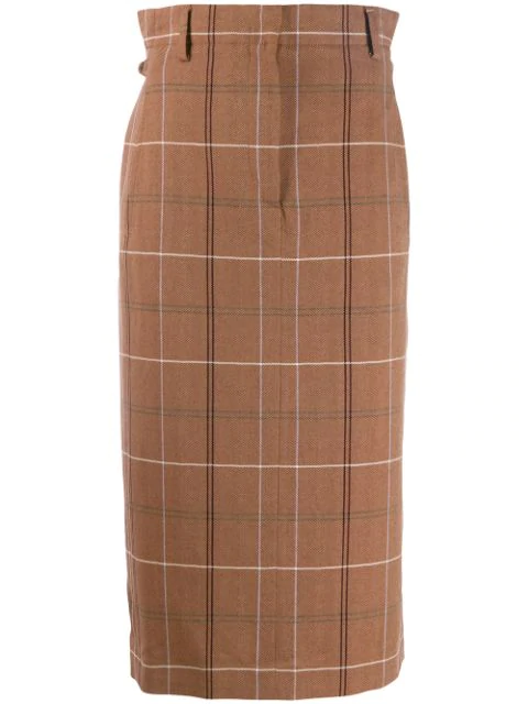 Acne Studios Paper Bag Checked Skirt In Brown Modesens