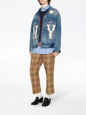 Shop Blue Gucci Denim Jacket With Ny Yankees Patch With Express Delivery Farfetch