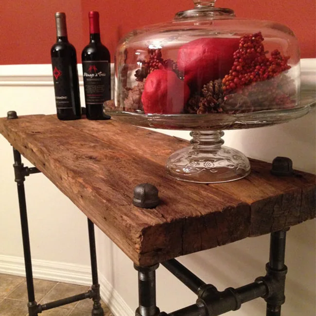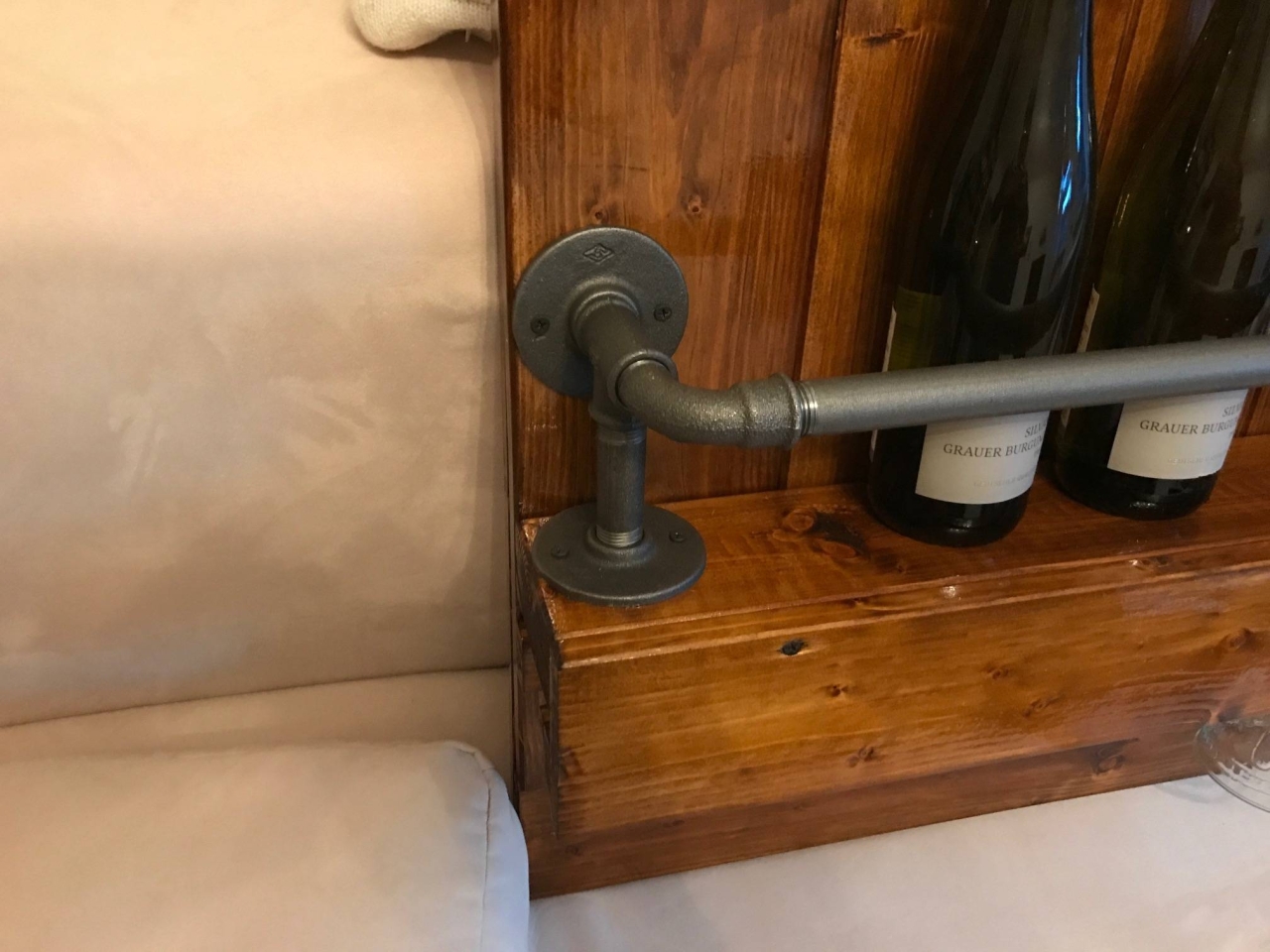 Eine unkonventionelle Verwendung für Temperguss Rohre findet sich in der folgenden Designidee Aus herkömmlichen Gusseisenrohren und 3cm dicken Buchenholzbohlen wurde ein Wandregal gefertigt, das in diesem Fall zur Aufbewahrung einer wertvollen Whiskysammlung dient Das Regal wird mit Gewindeflanschen direkt an der Wand befestigt Durch die Bohlen wurde mittig ein Loch gebohrt, in das ein.