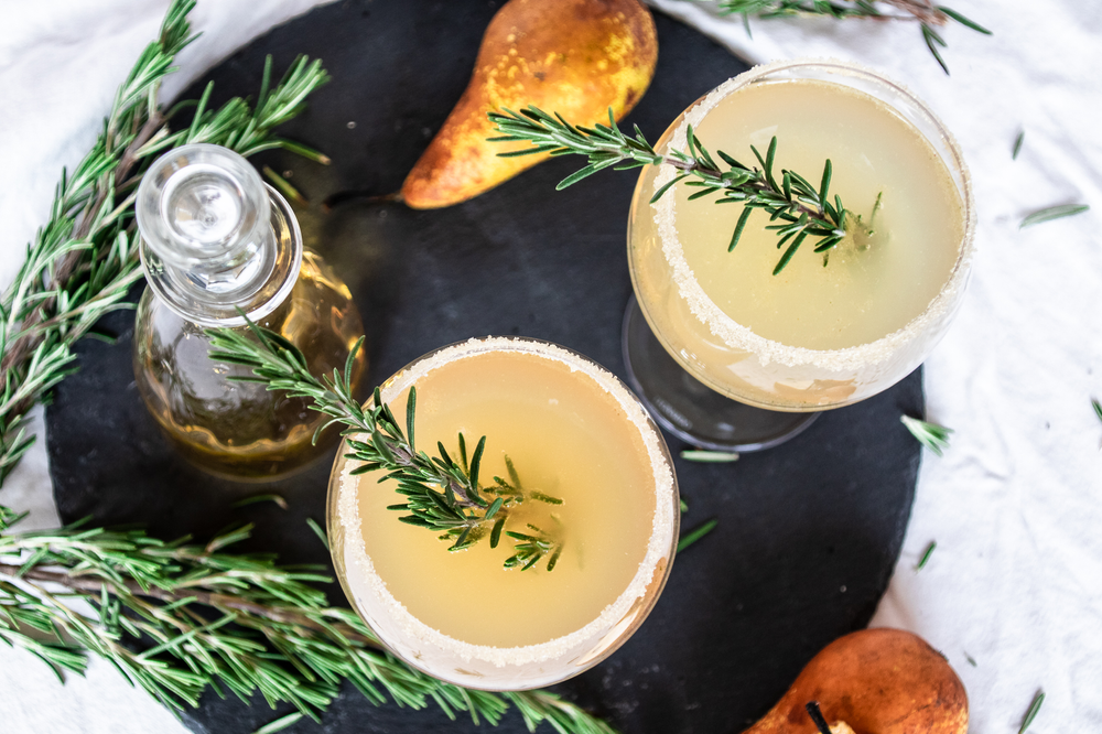 Winter Aperitif Mit Birnen Kardamom Rosmarin Und Prosecco Alkoholfreie Version