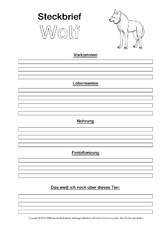 Steckbrief Wolf Unterrichtsmaterial Im Fach Sachunterricht