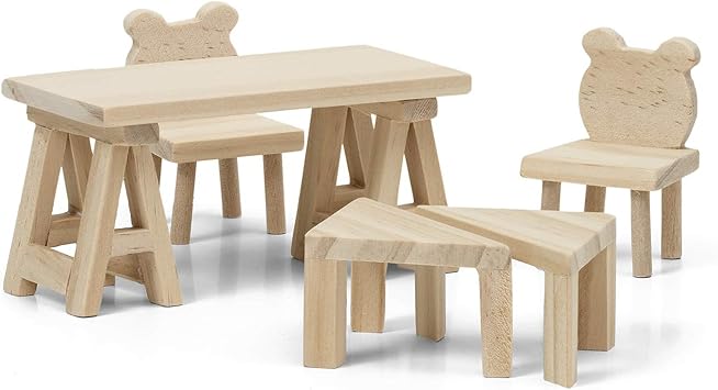 Lundby 60 Bastelset Diy Esszimmer Holzmobel Zum Selber Gestalten 7 Teilig Puppenhauszubehor Esstisch Stuhle Beistelltische Zubehor Ab 4 Jahre 11 Cm Puppen Minipuppen 1 18 Amazon De Spielzeug