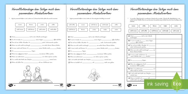 Modalverben Einsetzen Arbeitsblatter Unterschiedliche Schwierigkeitsgrade
