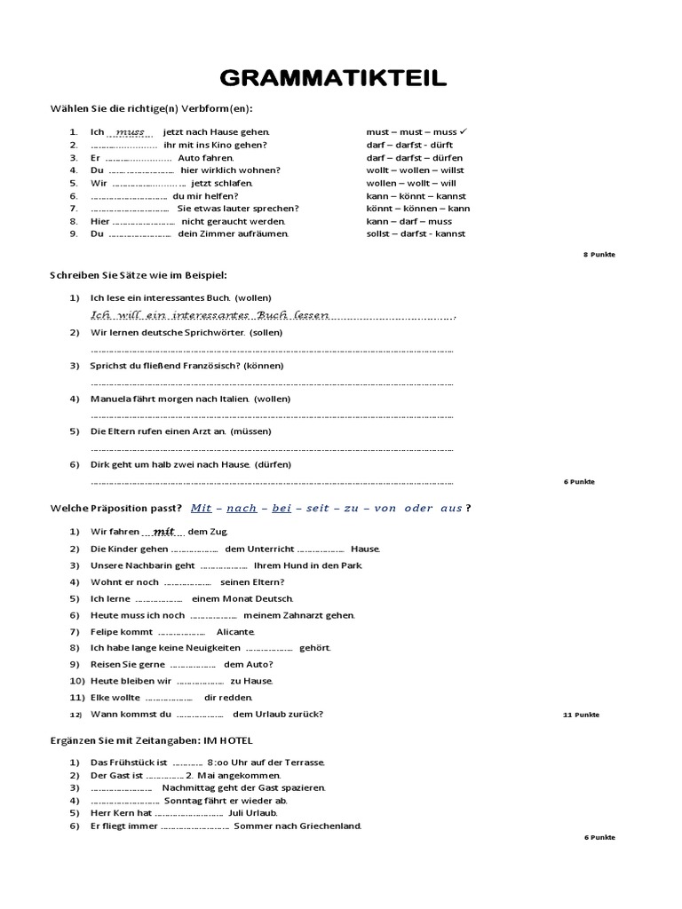 Arbeitsblatt Grammatik Modalverben Unterrichtsmaterial In Den Fachern Daz Daf Deutsch