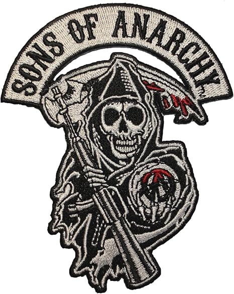 Amazon Com Sons Of Anarchy Text And Arched Reaper Logo Mens Patch Set Clothing