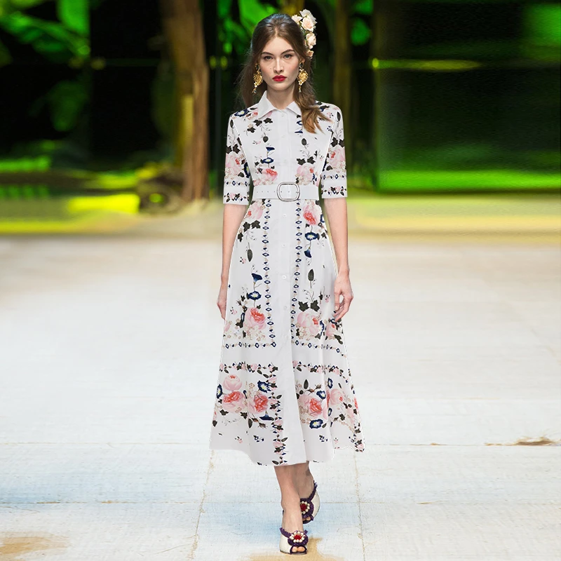 Gedivoen Summer Fashion Runway Midi Dress Women Floral Print Sashes Slim Fit Plus Size High Street Party Shirt Dress Dresses Aliexpress