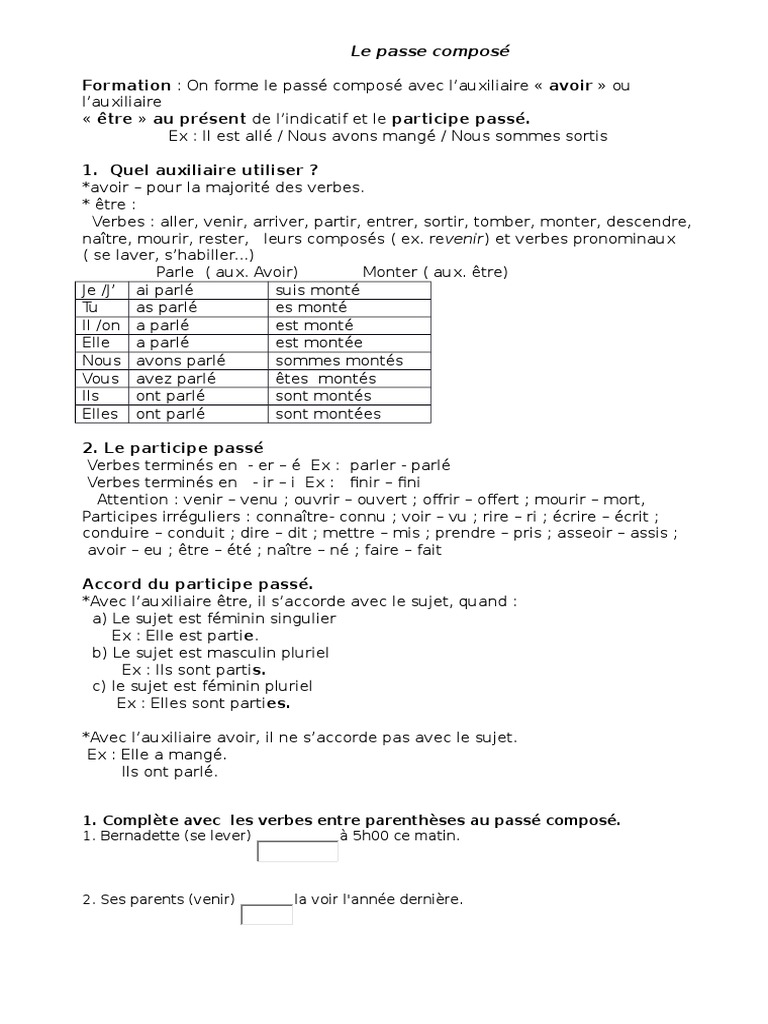 Pratique Des Verbes Au Passe Compose Mme Jade Gillis