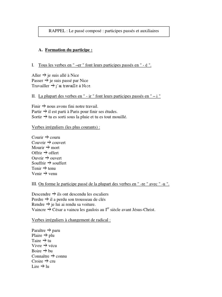 Auxiliaire Avoir Au Present Participe Passe Pdf Free Download